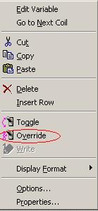 ביצוע FORCE בבקר ע"י קליק ימני על משתנה ו OVERRIDE